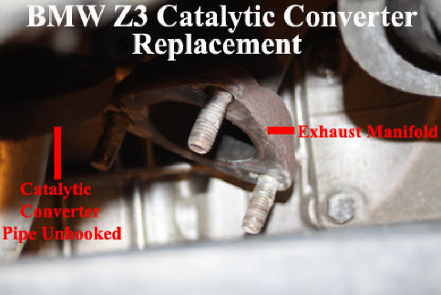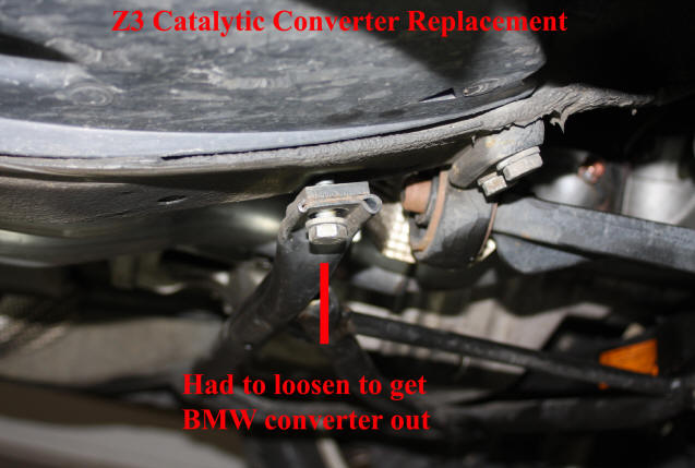 (10) Just to be sure, with BMW converter out, took a look and listen to actual converter and insides completely broken away from whatever supports it had in there and rattling at the slightest pound of my palm! Time to remove BMW converter from Z3? Perhaps 1 hour or slightly longer (I am always very slow so as to not strip a bolt or make a mistake of some kind.)